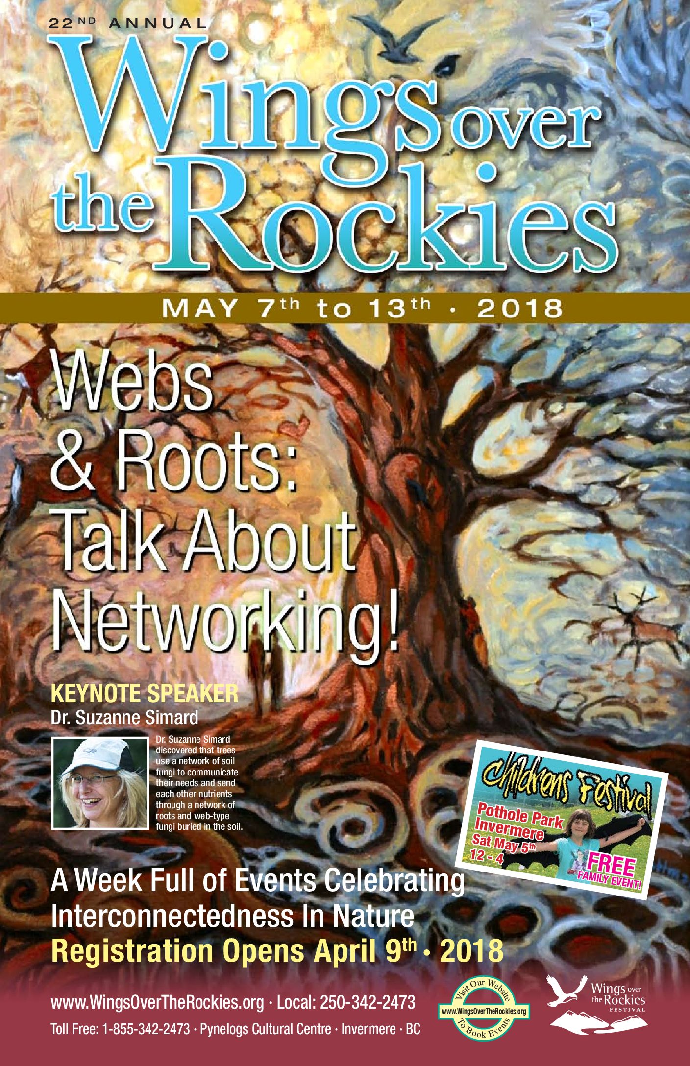 This year’s Wings Over the Rockies Festival explored the theme Webs & Roots: Talk About Networking! in recognition of Ecologist Dr. Suzanne Simard who while researching her doctoral thesis discovered that trees use a network of soil fungi to communicate their needs and send each other nutrients through a network of roots and web-type fungi buried in the soil.