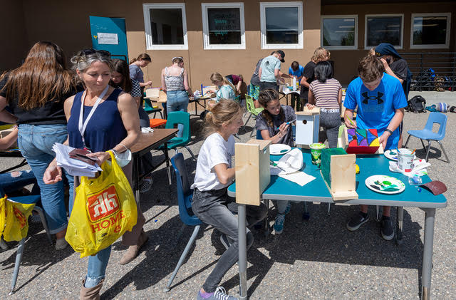 The Community participated in a bird house building contest. Some 250 blue birdhouse kits were distributed to the businesses and families in the valley thanks to the support of Home Hardware, Newhouse Self Storage and Rona plus the hard work of some of our dedicated volunteers. Many of the bluebird houses went on display during the festival in the Wildlife Art exhibit hosted by CV Arts at Pynelogs gallery.